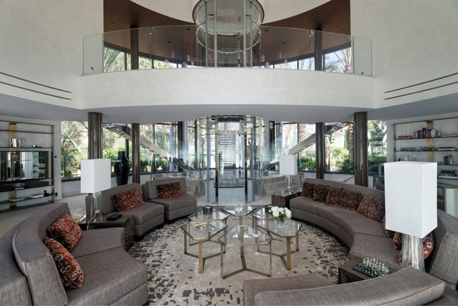 Pour permettre aux futurs locataires de se projeter dans cet intérieur circulaire, la SBM avait fait le choix de meubler l’une des trois villas. Et là aussi, ce fut manifestement un défi pour l’architecte d’intérieur, Olivier Antoine. « Plus d’une centaine de plans ont été nécessaires uniquement pour le traitement des espaces intérieurs — aménagements et décorations confondus. 80 % des meubles ont été réalisés sur-mesure. Y compris les canapés », nous indiquait-il en 2014. Les jardins et les aménagements extérieurs ont quant à eux étaient imaginés par le paysagiste français, Jean Mus.