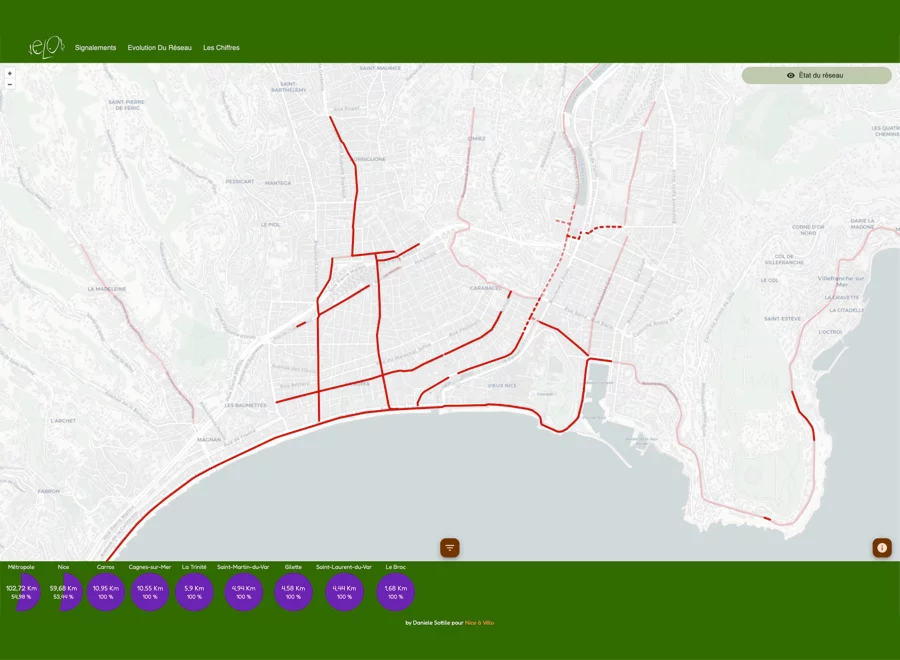 « Réalisé, c’est un grand mot, commente Daniele Sottile, porte-parole de l’association Nice à Vélo, interrogé par l’Obs’. Il n’y a que 600 m d’aménagements sécurisés, de vraies pistes cyclables, séparées physiquement de la chaussée par un terre-plein non franchissable. Le reste, ce sont des bandes cyclables, séparées des voitures par un simple marquage au sol », explique-t-il. Pire, la bande cyclable n’est présente que dans le sens Nice-Villefranche. De nombreux usagers, se sentant en insécurité sur la route vu le trafic, préfèrent donc rouler sur la piste cyclable aussi bien à l’aller qu’au retour, quitte à être en contre-sens et bien que cela soit interdit et dangereux. « Ce n’est pas comme ça que l’on donnera envie aux gens de prendre le vélo ! », regrette le porte-parole. Le sentiment d’insécurité est effectivement le premier frein à la pratique du vélo selon toutes les études menées sur le sujet. La Métropole a placé des compteurs sur ces nouveaux aménagements, mais les données ne sont pas exposées pour l’heure. Daniele Sottile assure en tout cas y avoir vu beaucoup de touristes cet été, qui allaient jusqu’à Villefranche ou Saint-Jean-Cap-Ferrat depuis Nice avec les vélos électriques en libre-service Lime.