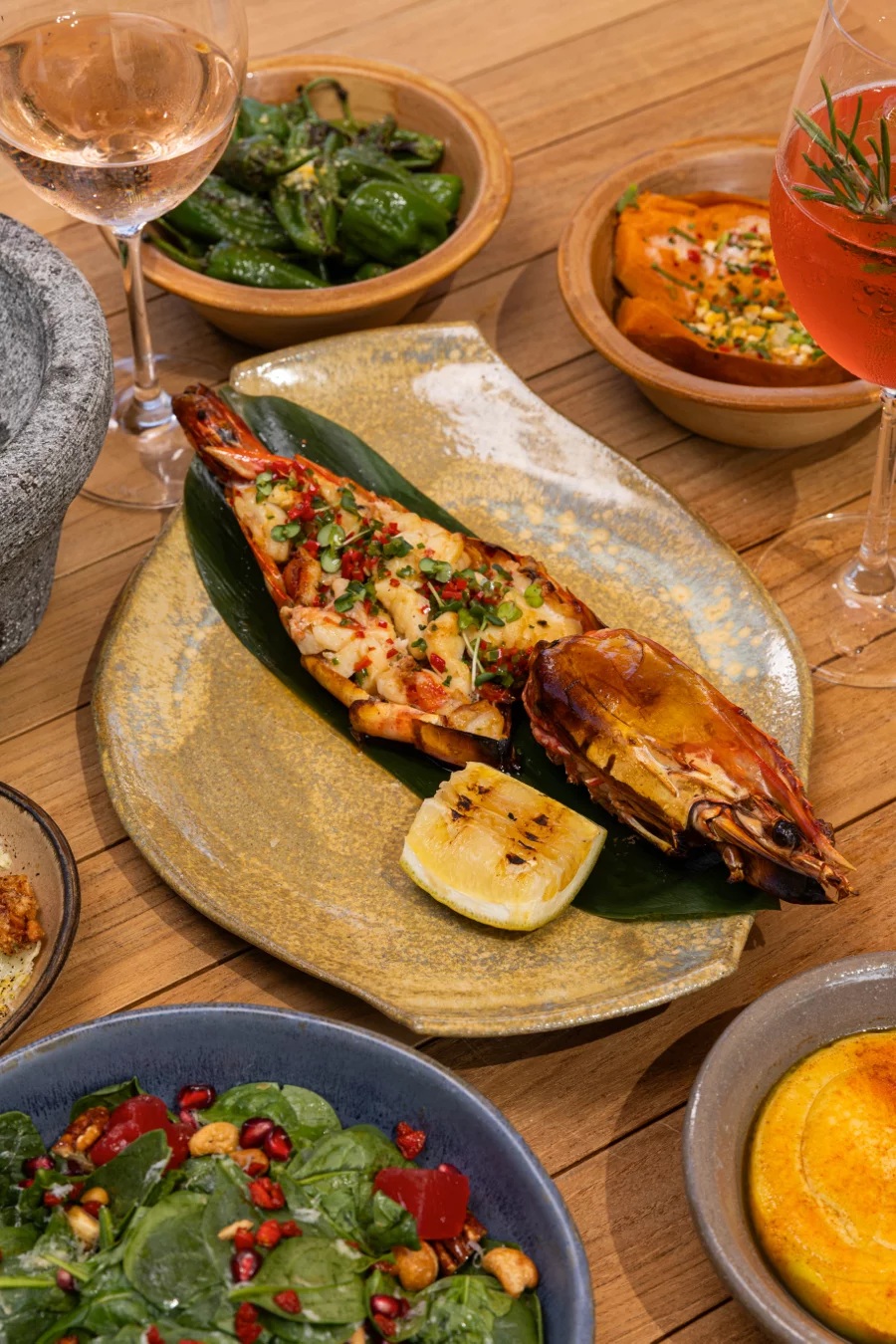 Le restaurant, exclusivement en terrasse, déploie une atmosphère bohème : larges toiles d’ombrage, mobilier en bois, poteries péruviennes et guerriers incas sculptés… Le tout dans un espace abondement végétalisé renforçant le charme sauvage de Ramatuelle. Côté cuisine, la carte, similaire à celle de Coya Monaco, fait la part belle au poisson, crus, en ceviches ou grillés au feu de bois. Elle propose également gambas géantes tigrées, langoustes au grill ou Cazuela de Homard (une sorte de ragoût typique d’Amérique latine).