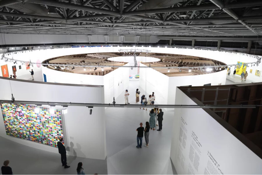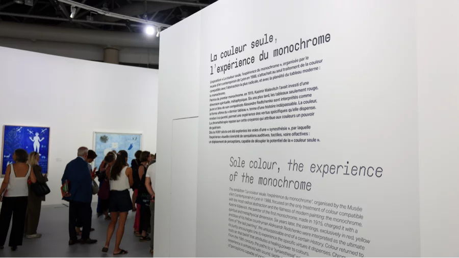 « C’était l’occasion de profiter de leur collection exceptionnelle. Le monde de l’art attendait cette opportunité avec impatience et le Grimaldi a été le premier à la saisir », raconte Didier Ottinger. La scénographie circulaire imaginée par William Chatelain est remarquable. Au centre, un cercle chromatique décline sept couleurs : blanc, noir, jaune, vert, bleu, rouge et rose. Dans le prolongement de chaque, une pièce monochrome, sorte d’espace immersif où le visiteur est invité à voir mais surtout à sentir et à écouter la couleur.