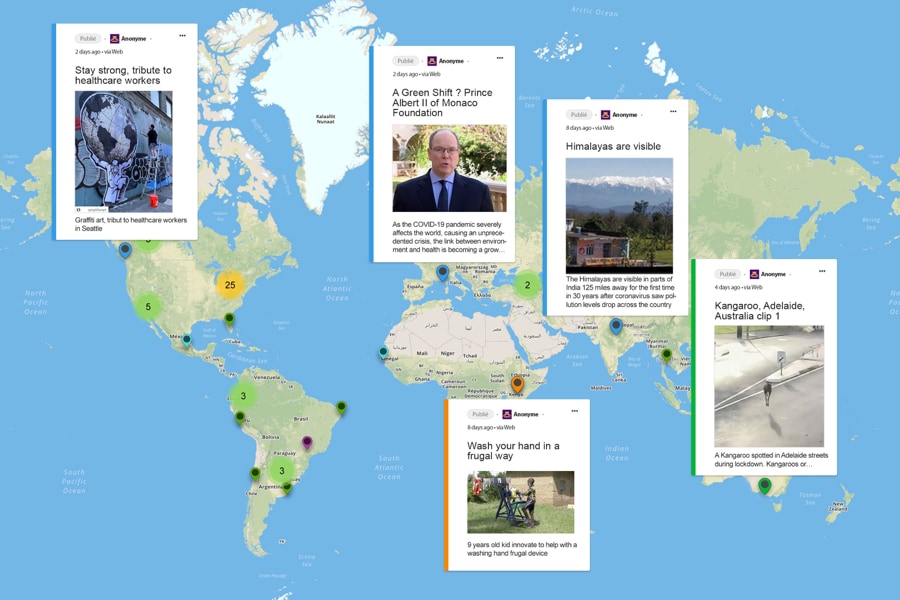 Parce que nous avons tous été témoins de petits ou de grands moments exceptionnels durant cette période de confinement, l’université Côte d’Azur (UCA) a lancé le recensement d’un maximum de témoignages. Pour ce faire, elle a créé une carte interactive sur laquelle tout le monde est invité à poster son témoignage « d’événements inédits et historiques vécus durant cette pause forcée du confinement ». L’objectif étant de construire un témoignage mondial et collectif de la pause planétaire. Le leitmotiv de l’université de Nice : « Conserver la trace des événements inédits et historiques que nous vivons ». La méthode est simple. Il suffit d’épingler sur la carte photos, textes, vidéos qui s’afficheront sous la forme de points géolocalisés. Et dessineront ainsi la carte des effets positifs du confinement. Les thématiques retenues sont la faune et la flore, la pollution, la solidarité, l’innovation frugale, la culture, l’art et l’éducation. « Nous avons tous été confrontés à certains phénomènes ou lu/vu des situations qui nous ont émerveillées. La contribution de chacun est essentielle, soutient l’université. Nous devons contribuer à faire évoluer vers l’équilibre, le rapport de l’homme à la nature en observant comment la nature et l’humain ont recomposé leur relation pendant cette période », explique Samira Karrach, directrice des projets transversaux à UCA. Pour participer, rendez-vous sur http://univ-cotedazur.fr/globalpause.