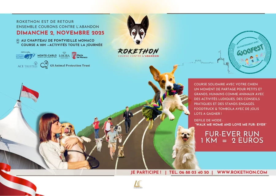 Propriétaires de chiens, réservez votre dimanche ! Le 2 novembre 2025, Monaco accueillera la deuxième édition du Rokethon, la marche solidaire organisée par l’association monégasque du même nom. Après le succès de l’an dernier, qui avait rassemblé plus de 400 chiens et leurs maîtres dans une ambiance solidaire et conviviale, l’événement revient avec la même mission : alerter sur l’abandon et la maltraitance animale, promouvoir l’adoption responsable et soutenir les refuges actifs au quotidien. Le rendez-vous est donné à 10h00 au Chapiteau de Fontvieille.