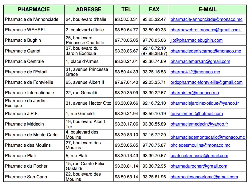 Les personnes concernées sont invitées à prendre contact avec leur officine du quartier. Voici la liste des pharmacies est les contacts :