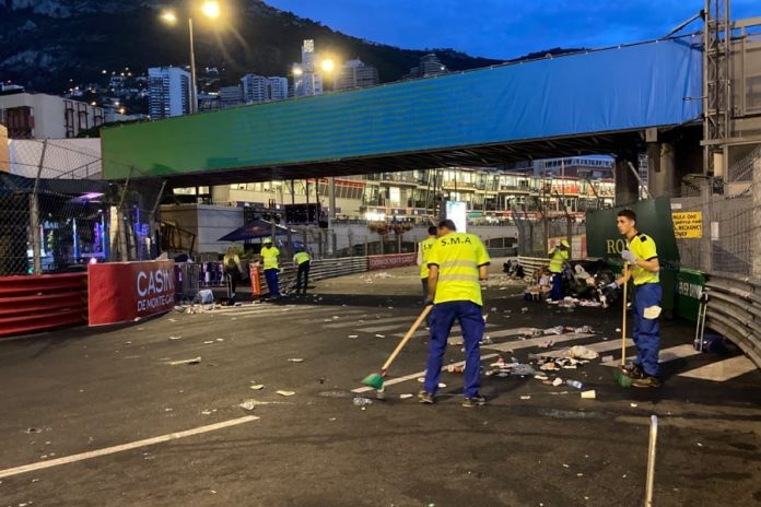 Mais l’évènement le plus salissant est sans aucun doute le Grand Prix qui demande une impressionnante et très millimétrée organisation, de jour comme de nuit. Durant les 4 jours de compétition, la Principauté et la darse sud en particulier se transforment en un véritable night-club à ciel ouvert mais aussi au fur et à mesure de la soirée et de la nuit, en une déchèterie à ciel ouvert… « De la Brasserie jusqu’à la Rascasse, les restaurateurs ont le droit d’occuper la piste le soir pour faire discothèque, rappelle Rémi Regul. La darse sud est donc jonchée d’innombrables déchets en tous genres sur le sol : gobelets, assiettes en carton, essuie-mains, canettes, ou encore bouteilles en verre. C’est le plus gros événement de l’année pour la SMA. »