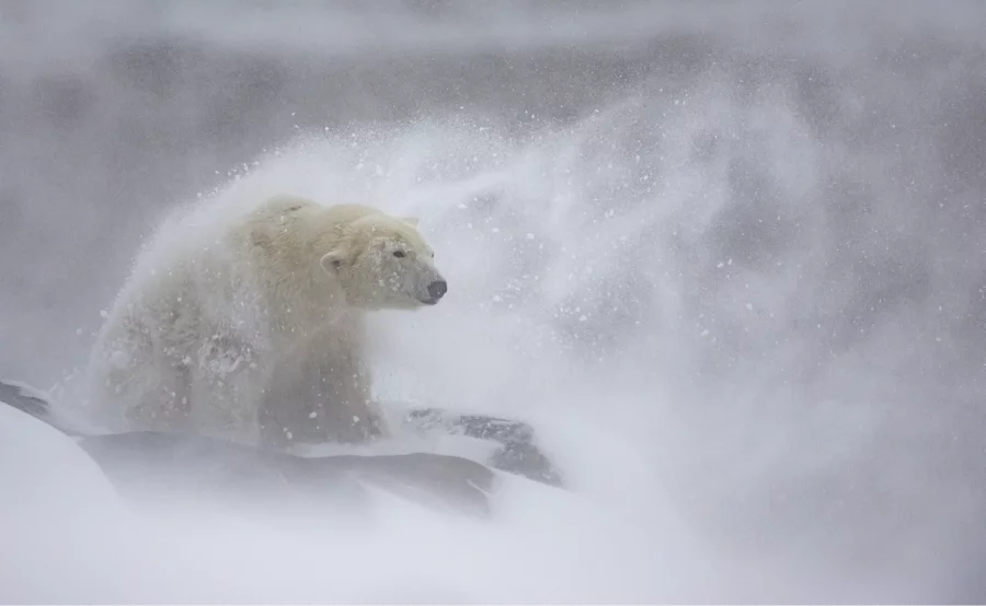 Shaking off the snow. Ours polaire dans le blizzard, Canada, 2022