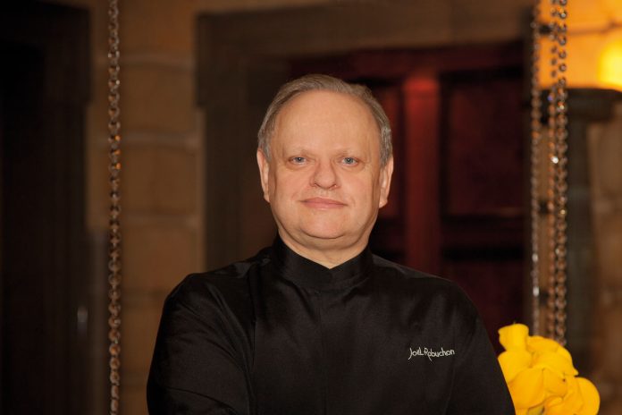 Pas facile de prendre rendez-vous avec Joël Robuchon. Toujours entre deux avions, ce chef est un hyper actif. Le rendez-vous de 14h30 se transforme donc en rendez-vous de 15h30. Environ. Toujours souriant, Joël Robuchon débarque. Vêtu d’une tenue de cuisine noire siglée à son nom, impossible de le rater. La poignée de main est franche. La discussion peut commencer.